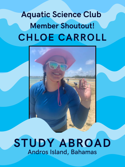 This summer, Chloe Carroll represented the Aquatic Science Club on a study abroad to Andros Island, Bahamas. From fieldwork to cultural exchange, she brought home new skills, fresh perspectives, and unforgettable memories.