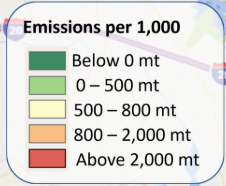 For all the counties listed above the emissions between 2015 and 2024 saw an increase rather than a decrease. This could be due to a multitude of reasons, one being more development in these counties, yet even still all these counties remain in the “green” or better in terms of carbon emissions. See the image below for how the Georgia Drawdown ranks or color codes the range of emissions.